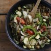 Tálaljuk friss rozscipó szeletekre halmozva, lilahagymával és friss koktélparadicsommal.