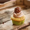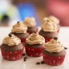 Gőz felett olvasszuk meg a vajban a fehér csokoládét, hűtsük le és keverjük össze a mascarpone sajttal. Töltsük habzsákba, nyomjuk a muffinok tetejére és díszítsük a pillecukorral.